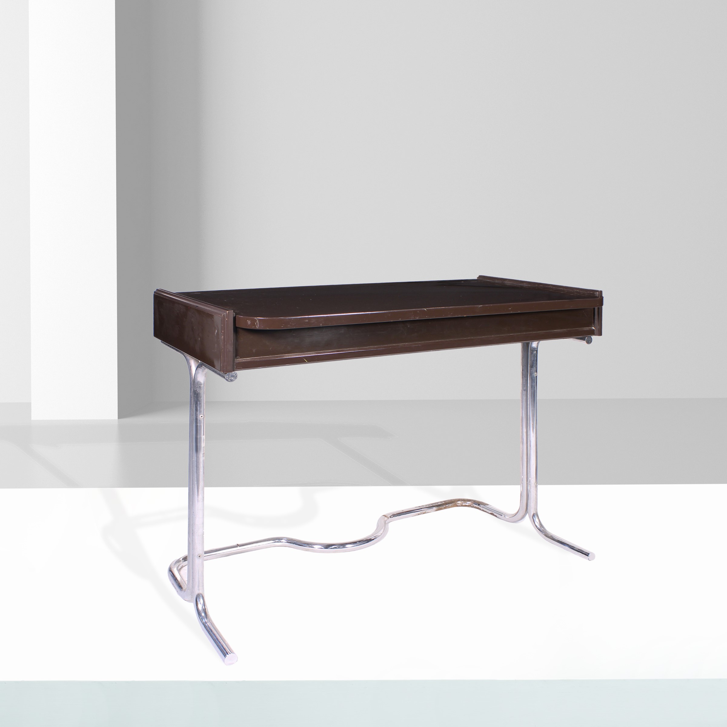 scrittoio in stile Art Déco in legno ebanizzato e acciaio cromato, lievi difetti.