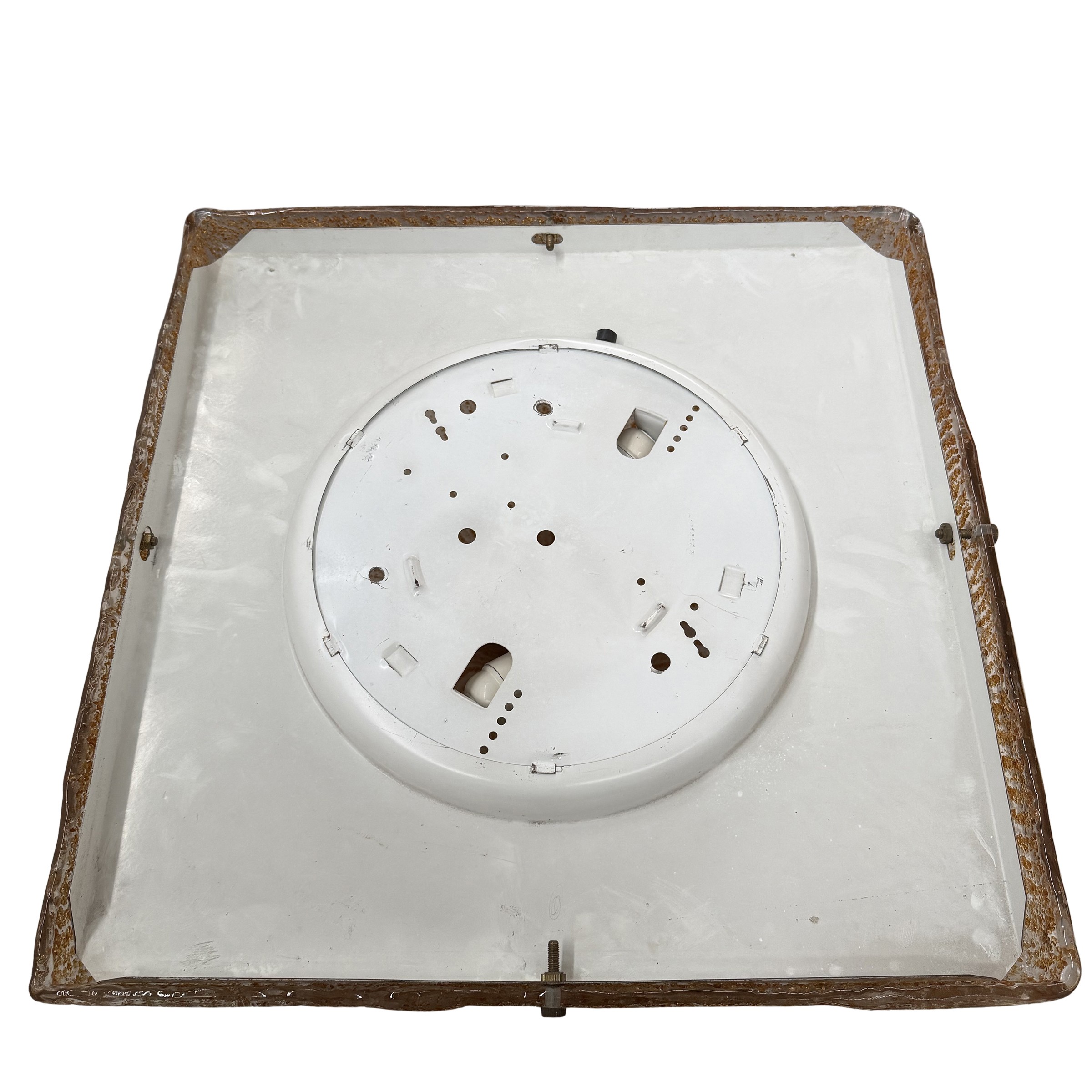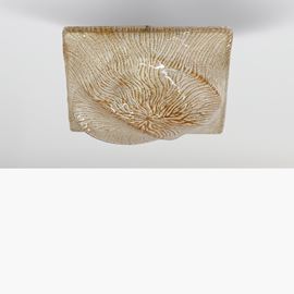 plafoniera in vetro trasparente con inclusioni color ambra