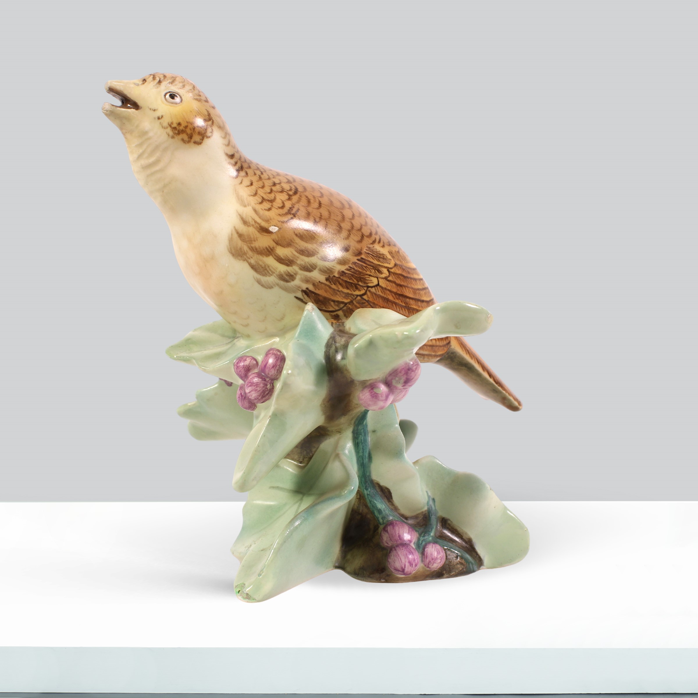 scultura in porcellana raffigurante un volatile su un ramo, marchio della produzione
