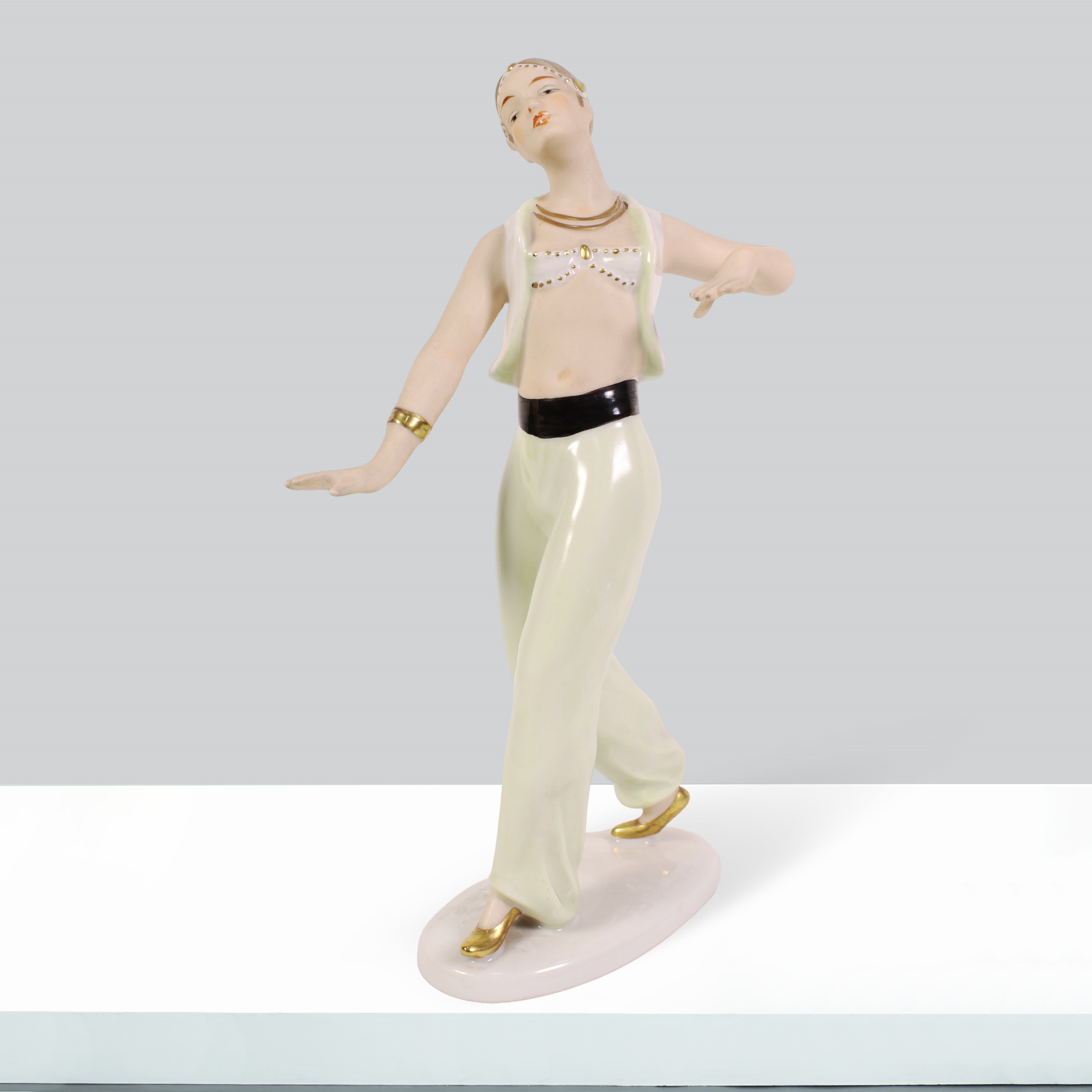 scultura in porcellana raffigurante una ballerina, marchio di produzione.