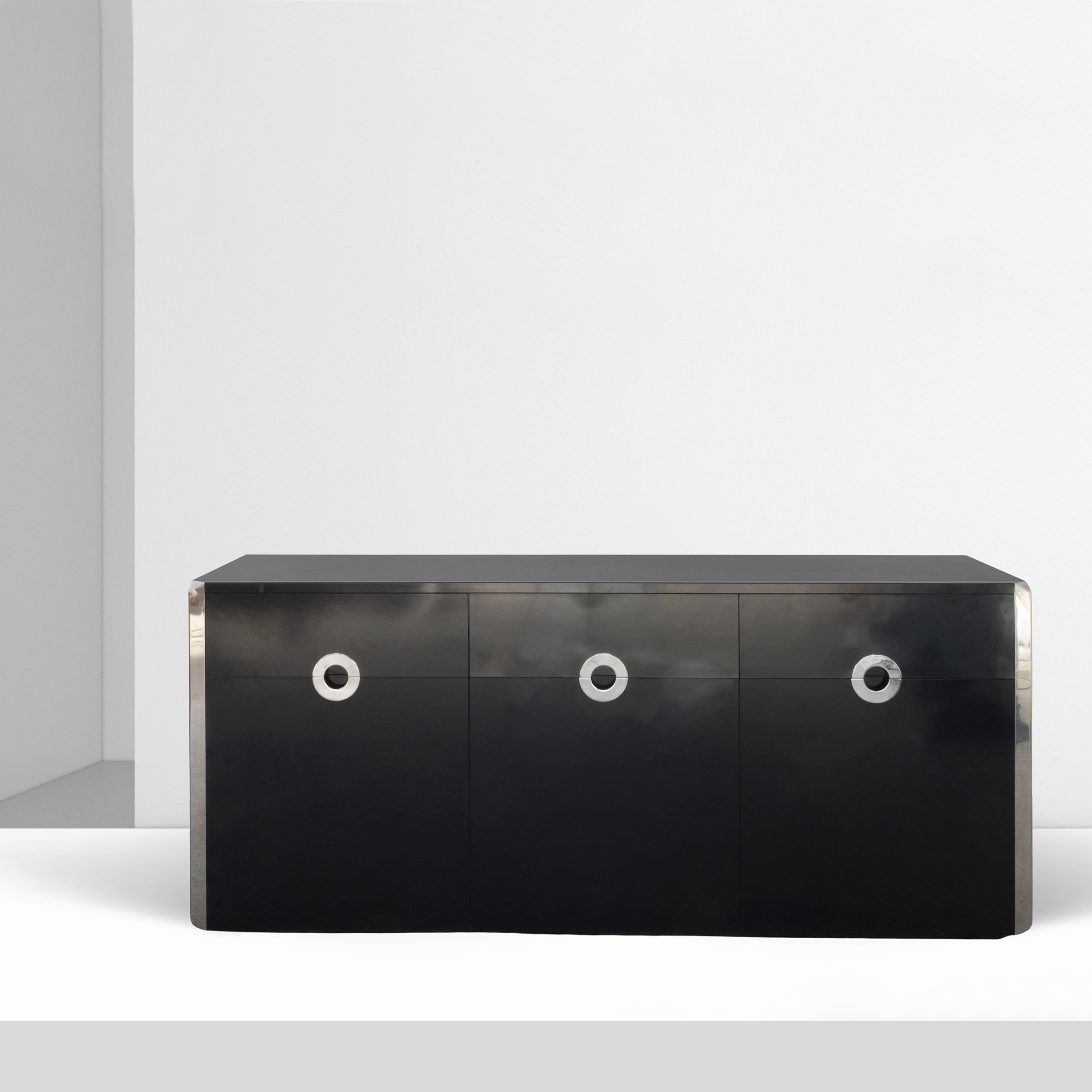credenza in legno laccato e acciaio cromato