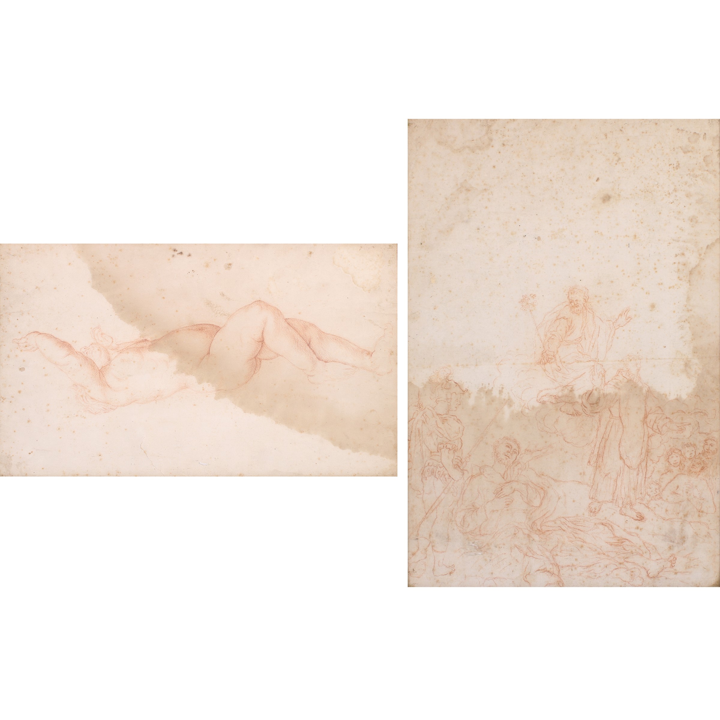 "Nudo" - "Scena biblica", due sanguigne su carta, difetti