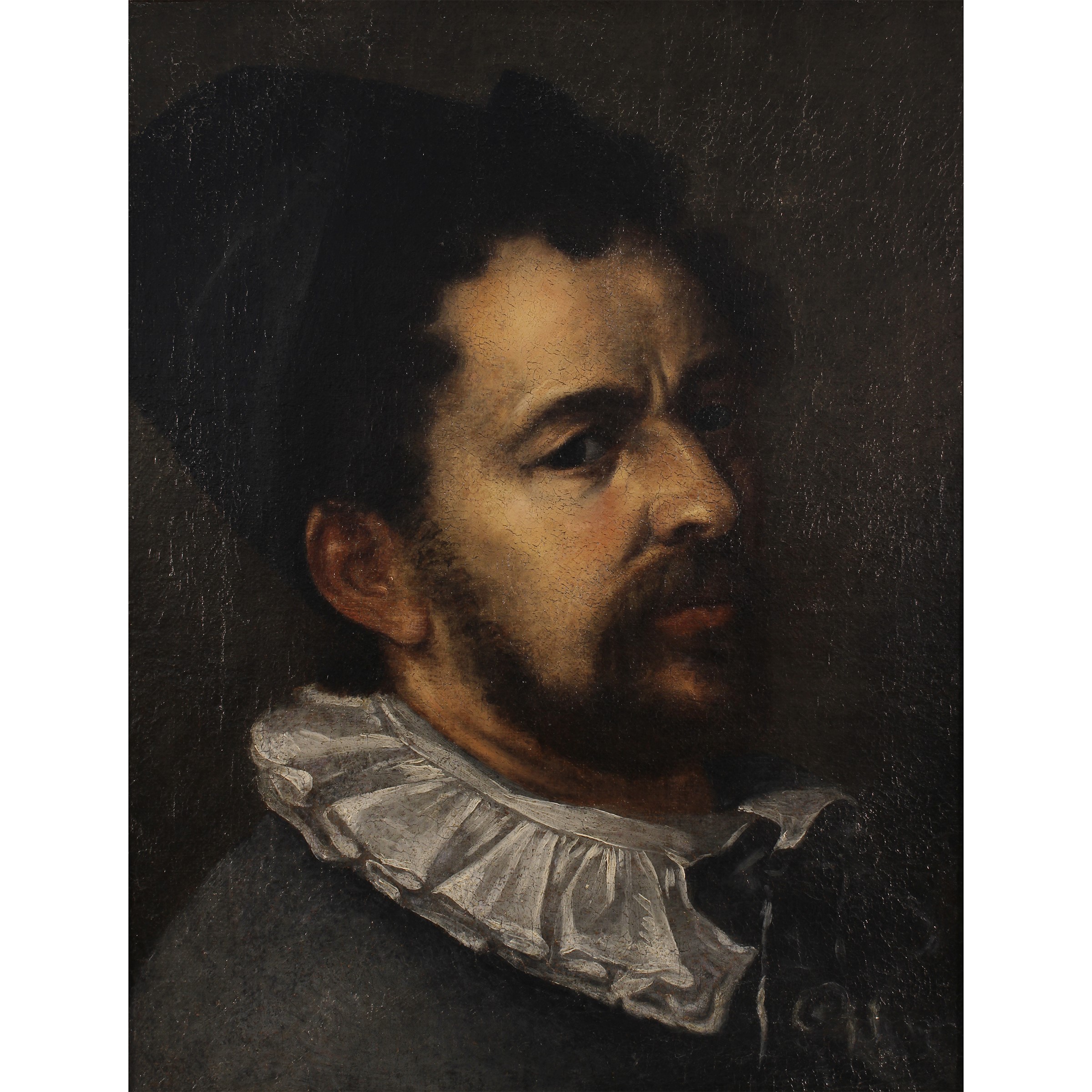 "Autoritratto", olio su tela, entro cornice in legno dorato
