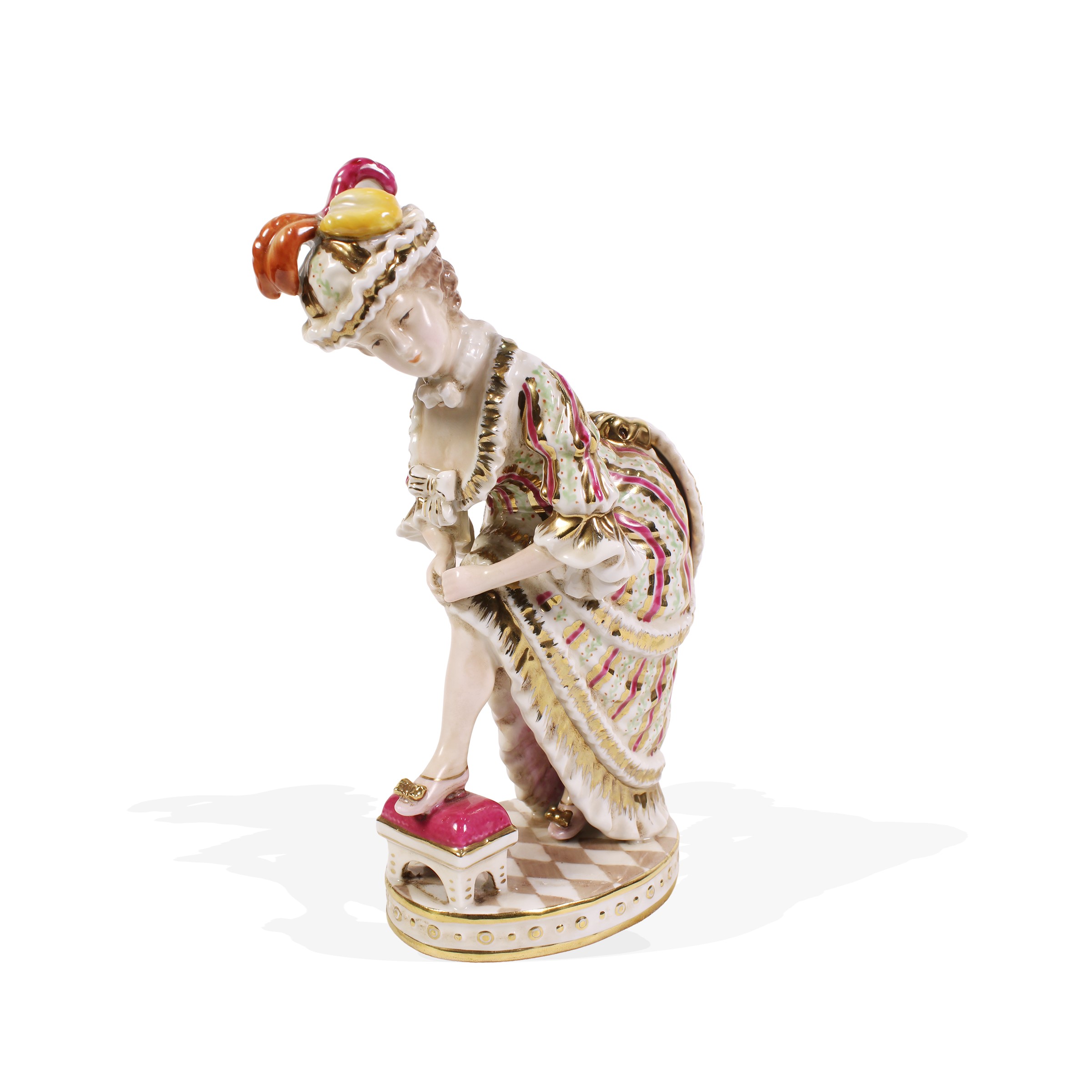 scultura in porcellana raffigurante figura aristocratica femminile, marchio della produzione.