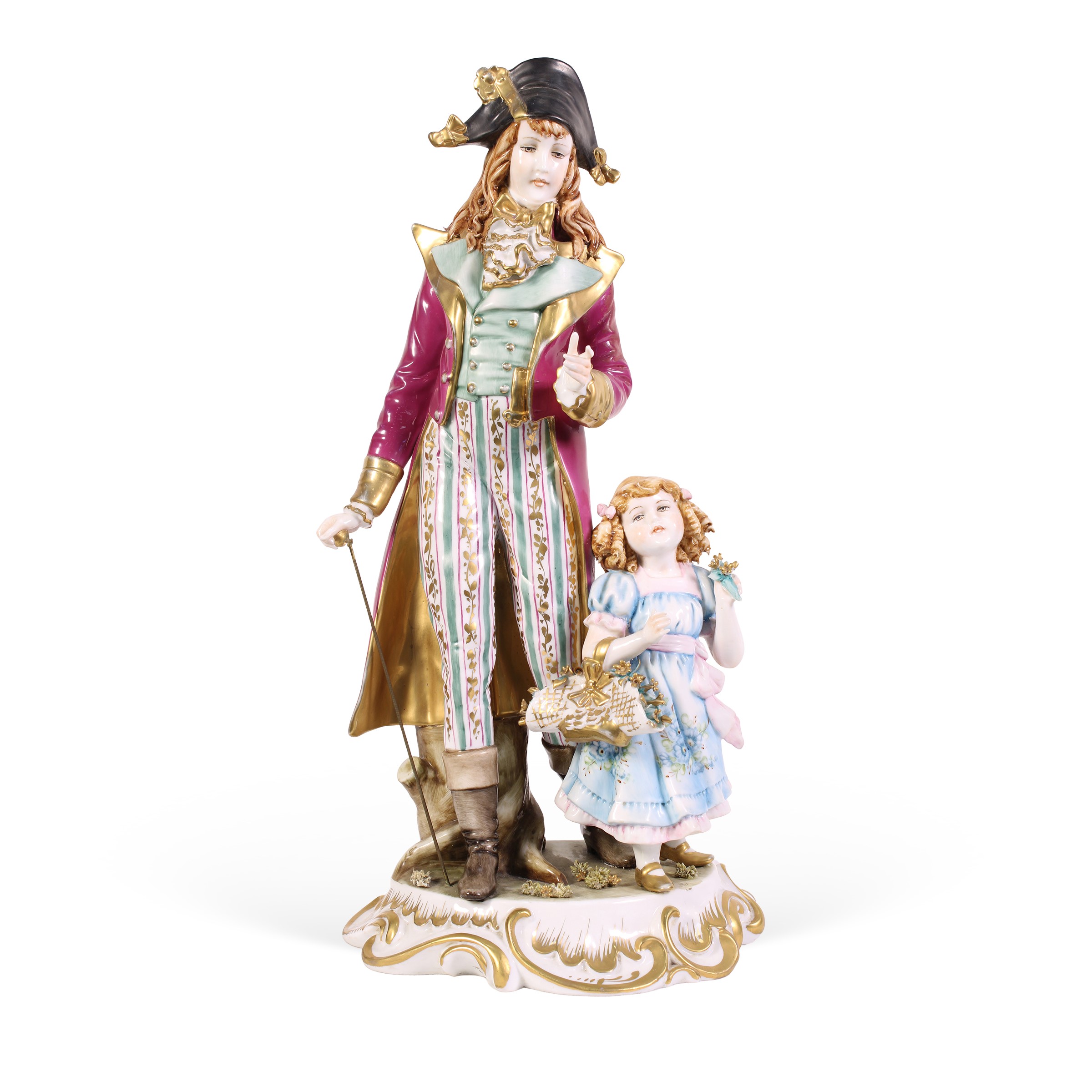 scultura in porcellana raffigurante donna con bambina, marchio della produzione.