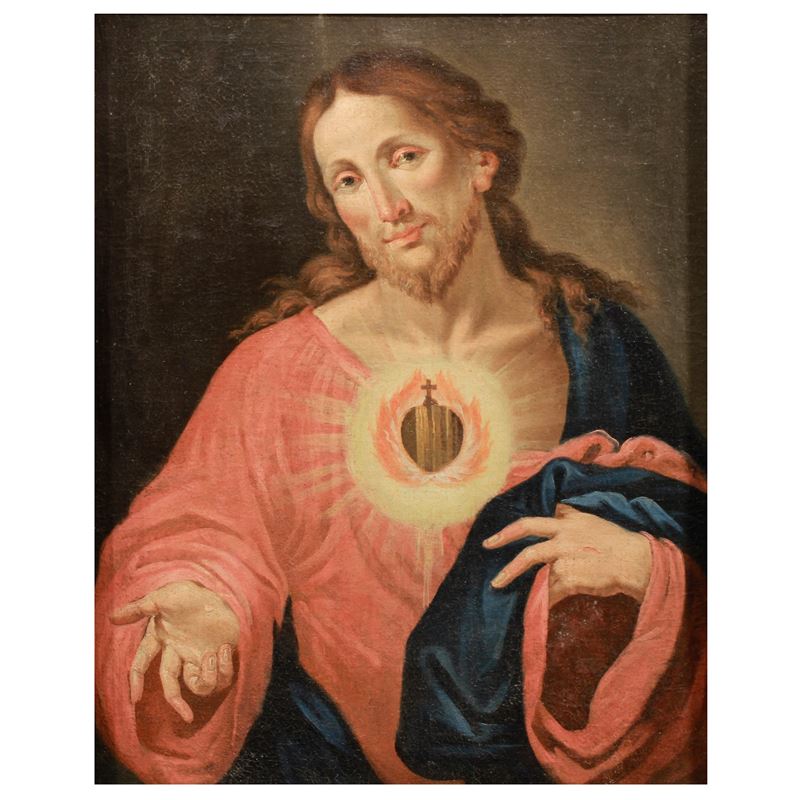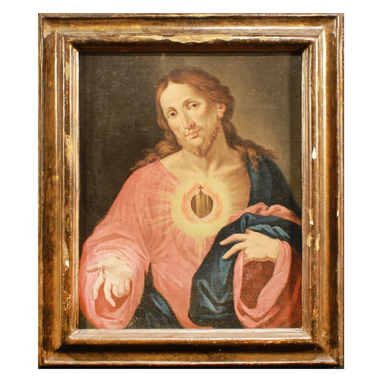 "Sacro cuore di Gesù", olio su tela, entro cornice in legno