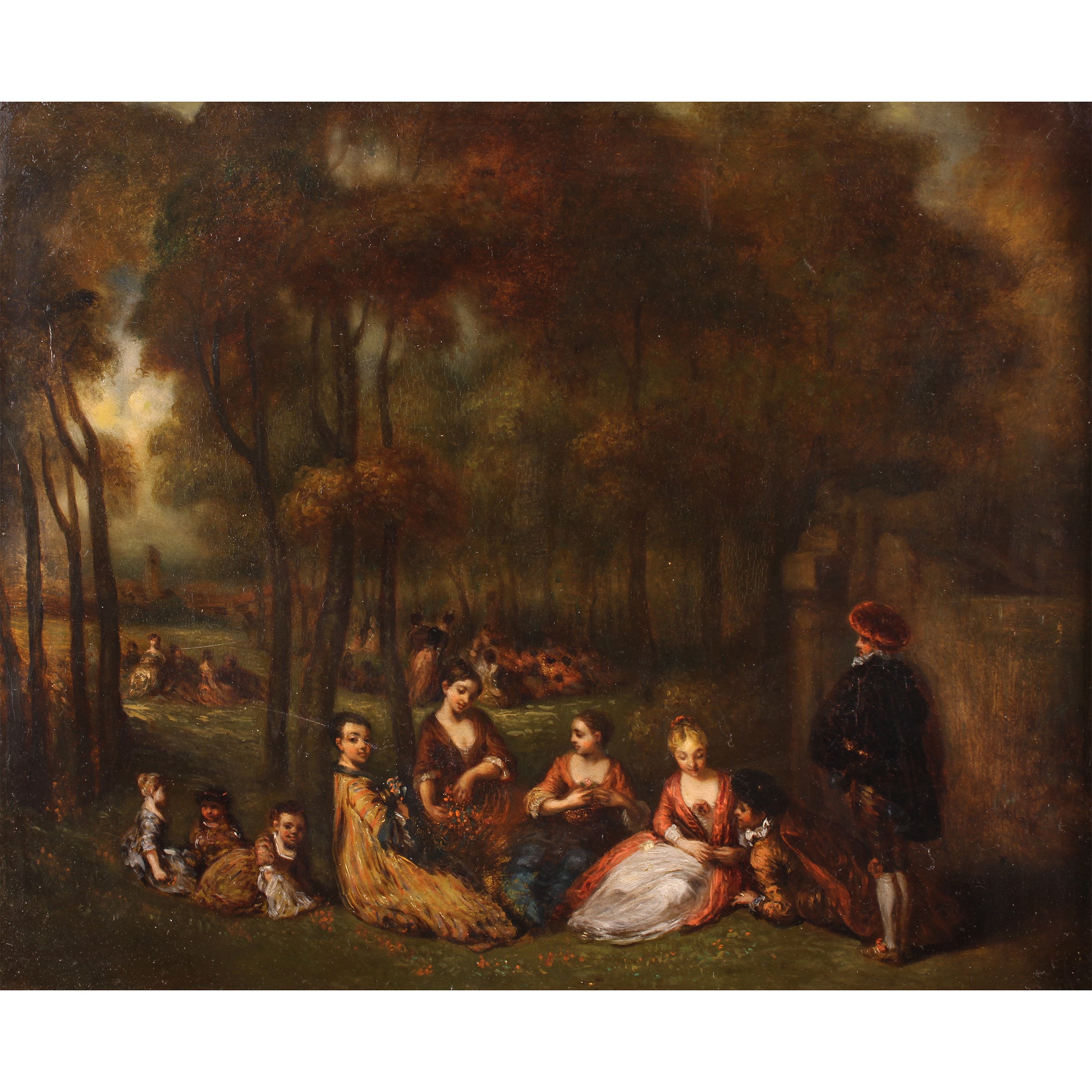 "Paesaggio con personaggi" olio su rame, entro cornice in legno dorato