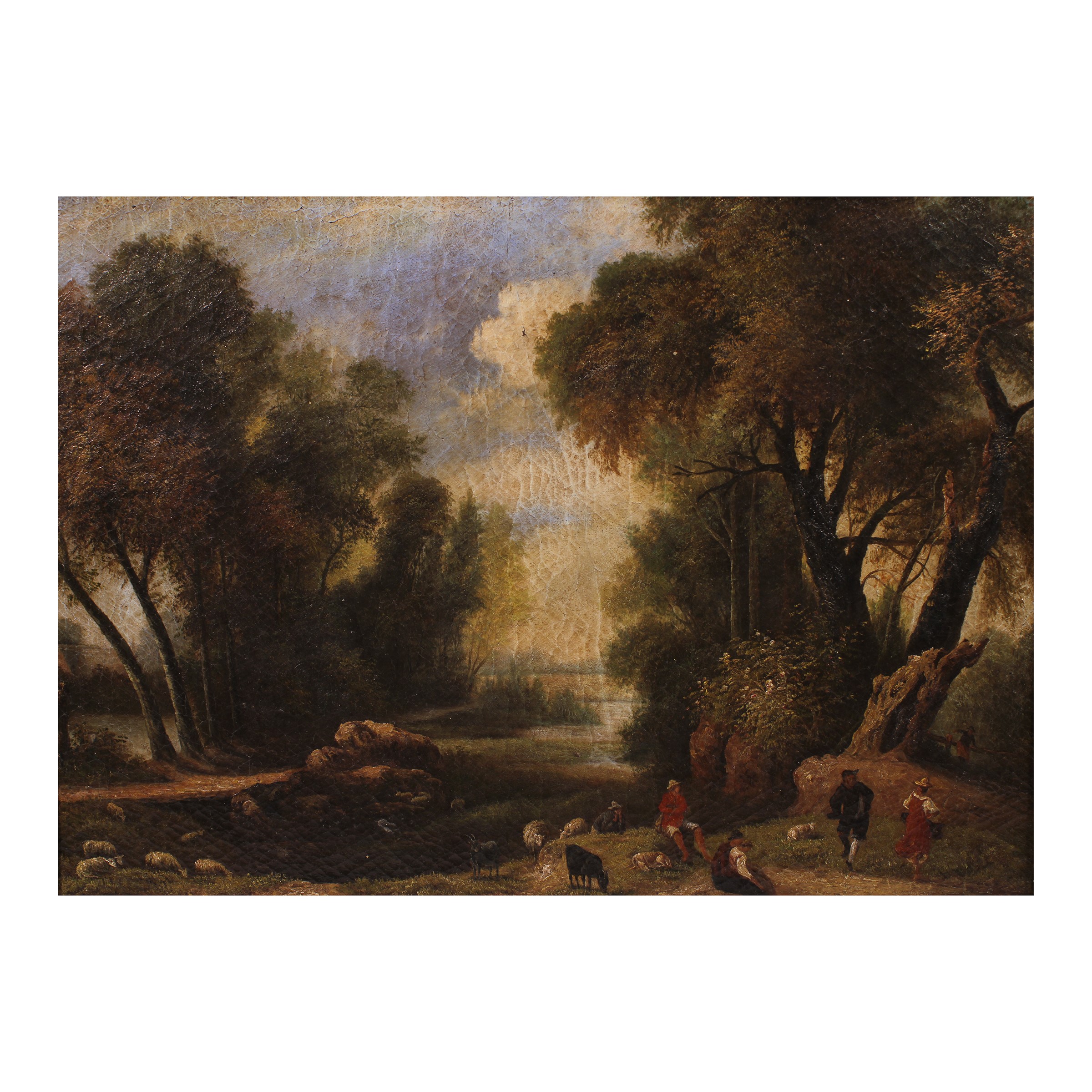 "Paesaggio con armenti e figure", olio su tela.