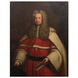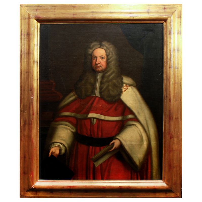 "Ritratto di giudice", olio su tela, entro cornice in legno dorato
