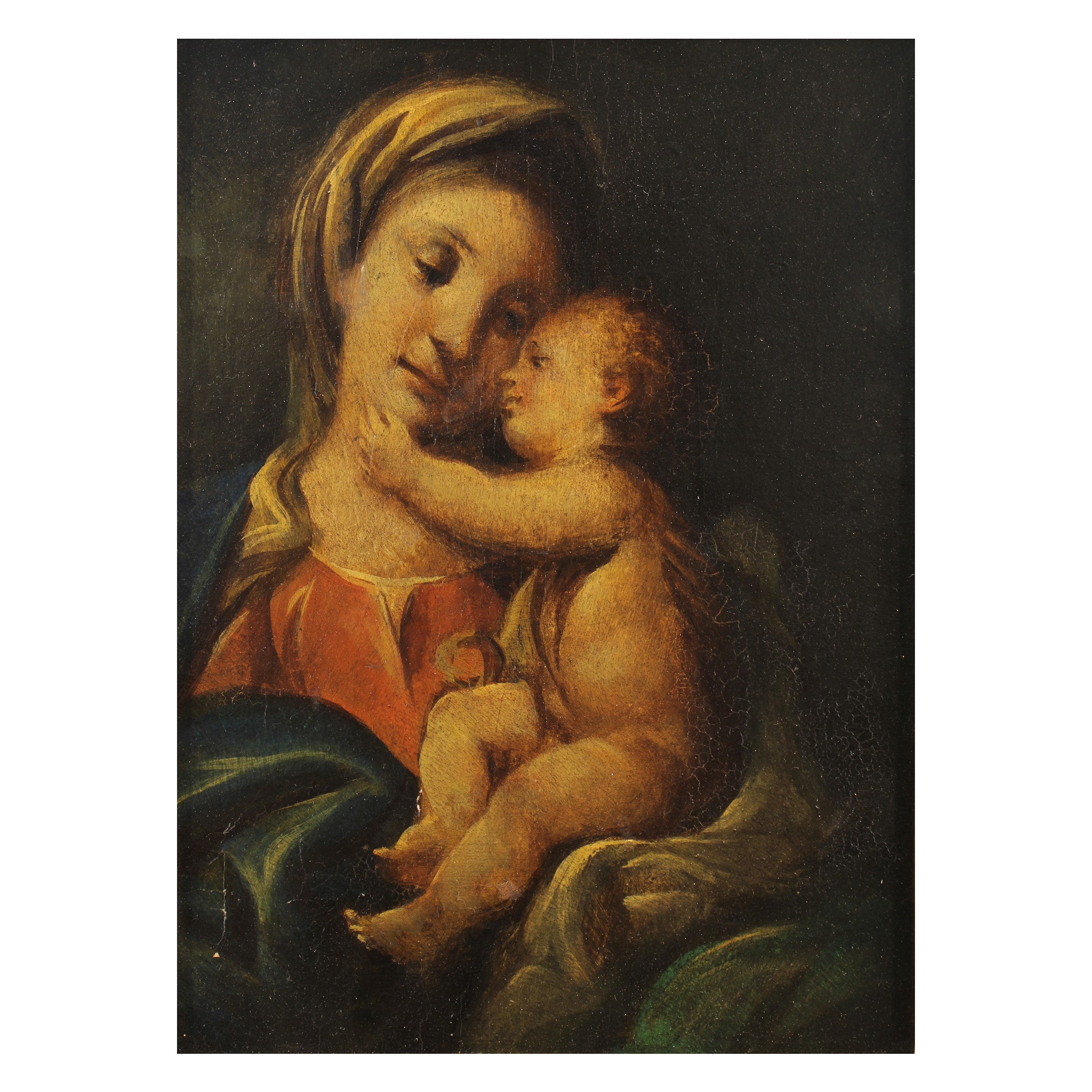 "Madonna con bambino", olio su tavola entro cornice in legno dorato