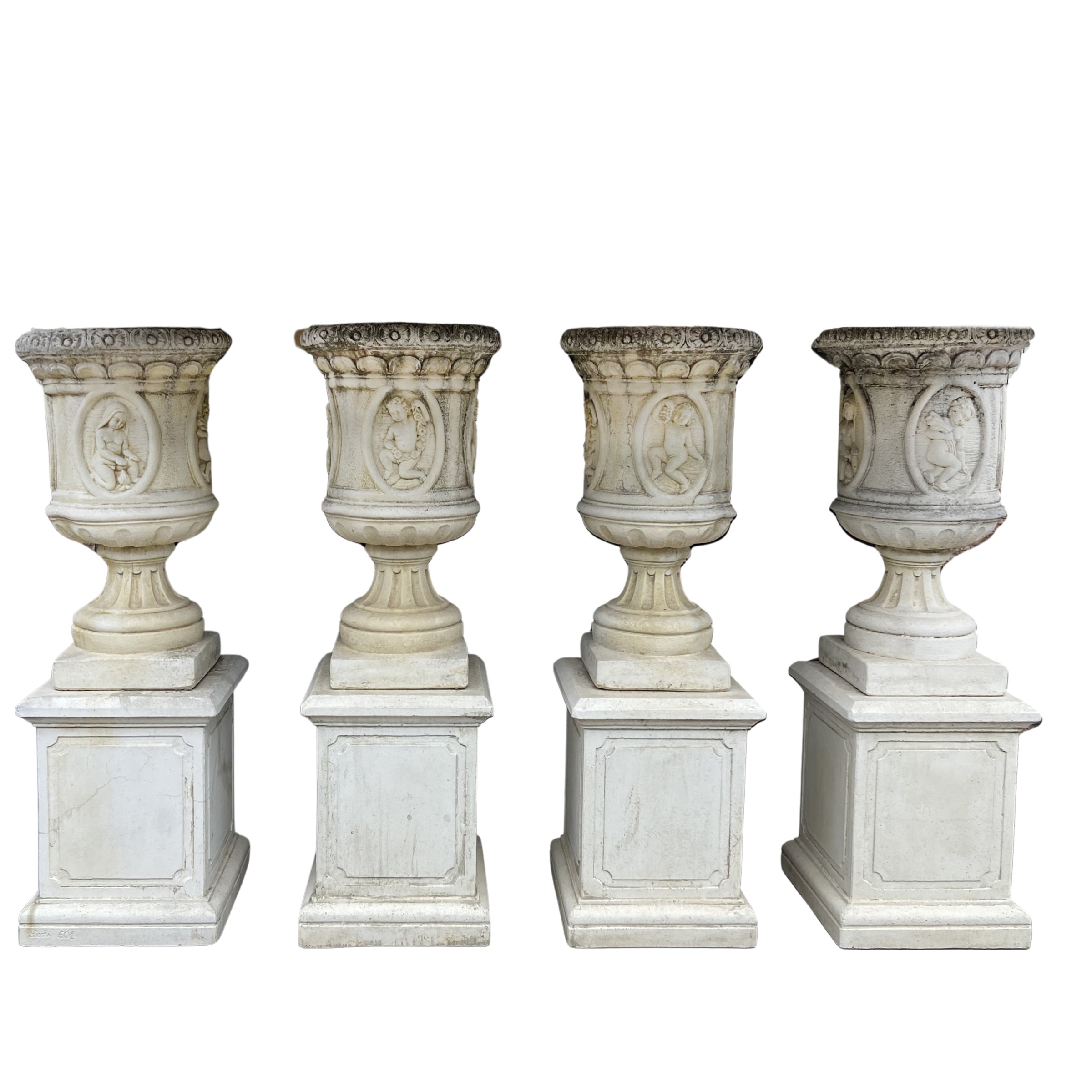 Quattro grandi vasi in pietra composta, XX Sec.