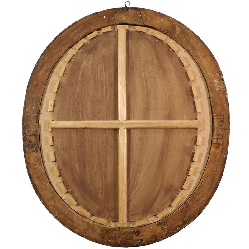"Vergine Maria", olio su tela applicata su tavola, entro cornice in legno dorato